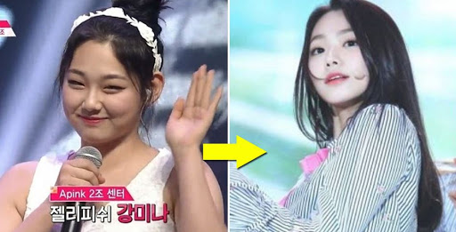 또한 강미나는 2016년 모습과 많이 변했다. 2016년에 프로듀스 101 에이핑크 노래로 나왔을 때랑 지금이랑 보면 살이 많이 빠졌다. 11kg~13kg 뺐다고 한다. 예전의 모습도 이쁘고 매력적이었지만 지금은 더 성숙하고 멋있고 더 예쁜 모습으로 활동 중이다.