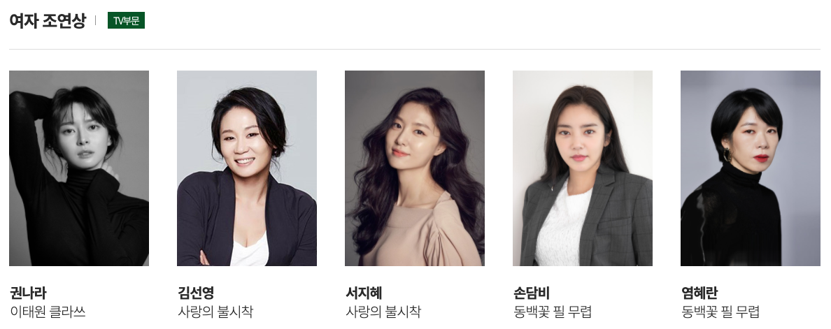 아마도 백상예술대상의 TV부분 여자 조연상을 수상하게 될 것 같습니다. (현재:05/15/2020)