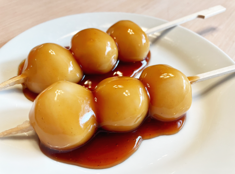 당고 (みたらし団子)는 달콤한 간장으로 유약을 바른 일본 전통 쌀가루 만두입니다. 막대기에 3-5 개의 쌀가루 만두 그룹으로 구성됩니다.