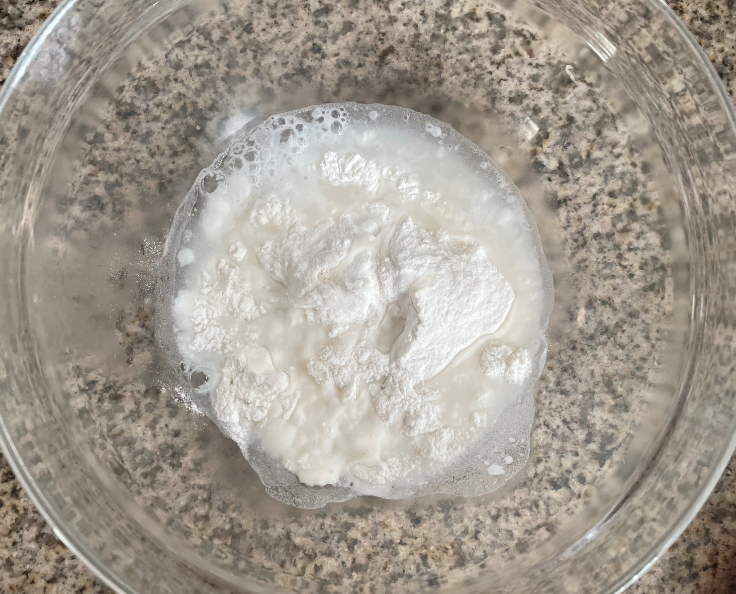 While the sauce is heating, mix the starch powder and water separately. (Note: Mix quickly to avoid hardening)