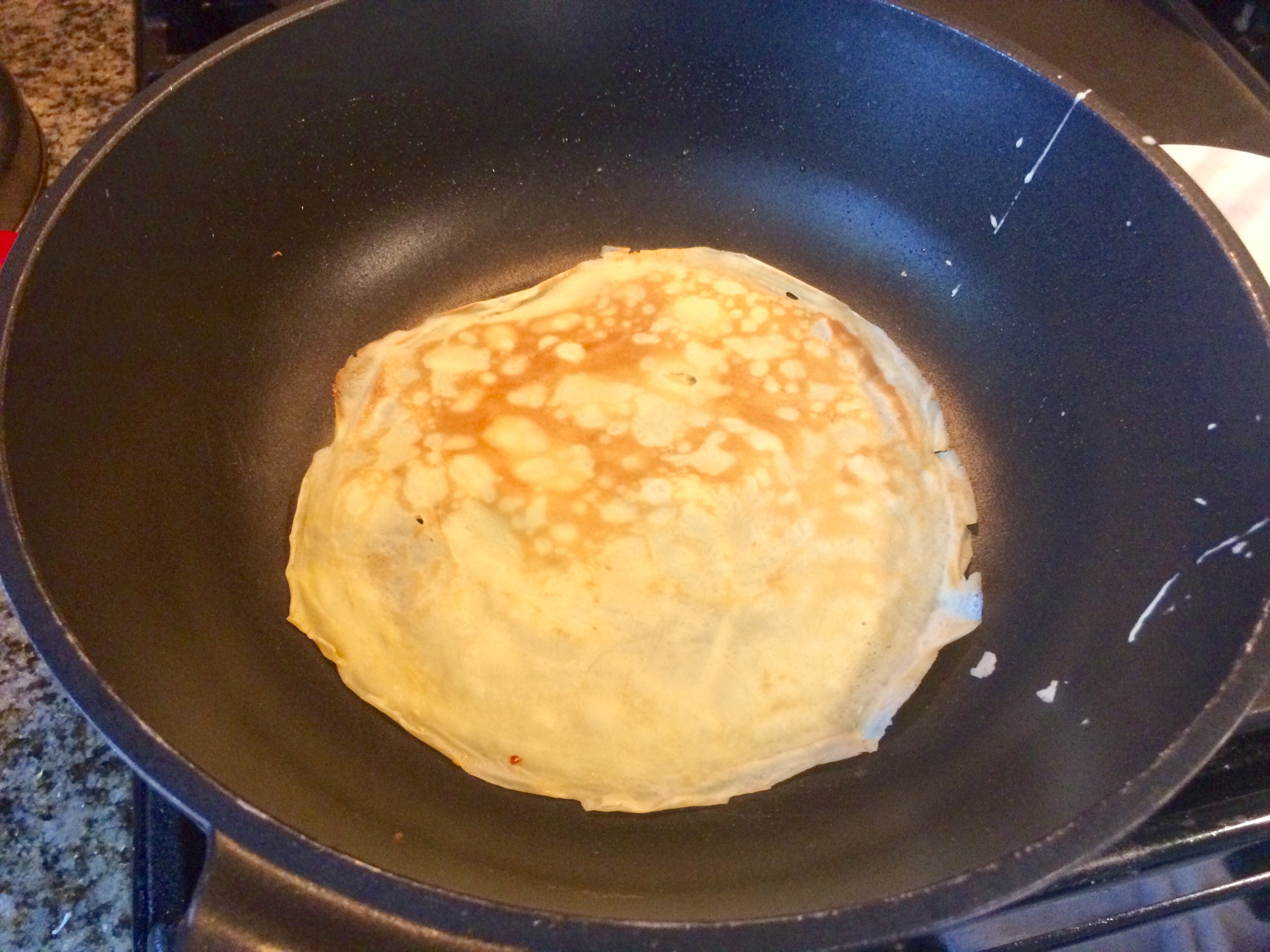 (7) 크레페를 타지 않게 익히고 노릇노릇 해졌을 때 뒤집는다.