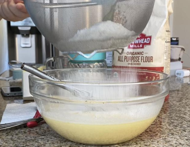 (4) 믹스에 뭉친 밀가루가 아직 있을 수 있어서 체에 한번 걸린다.