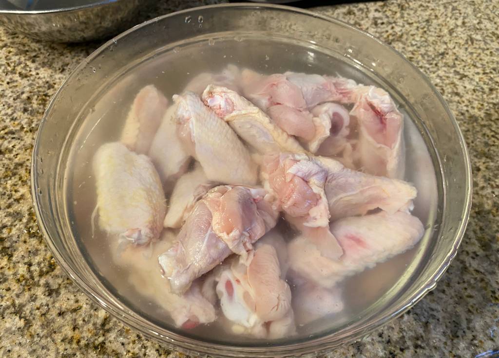 (1) 먼저 치킨 윙을 물로 씻고, 날개 주위에 털을 잘라줍니다. First, wash the chicken wings with water and cut the fur around the wings.