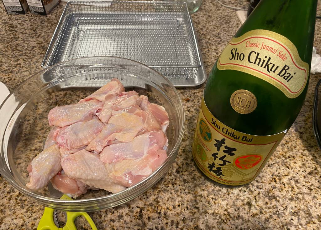 Leave the chicken inside the sake or water (or milk) for 10 minutes.