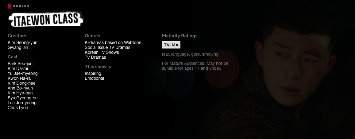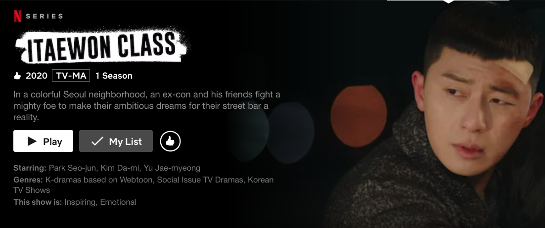 몰입도와 빠른 진행으로 지루함이 없이 16화까지를 다 보게 됩니다. (Netflex: Itaewon Class)